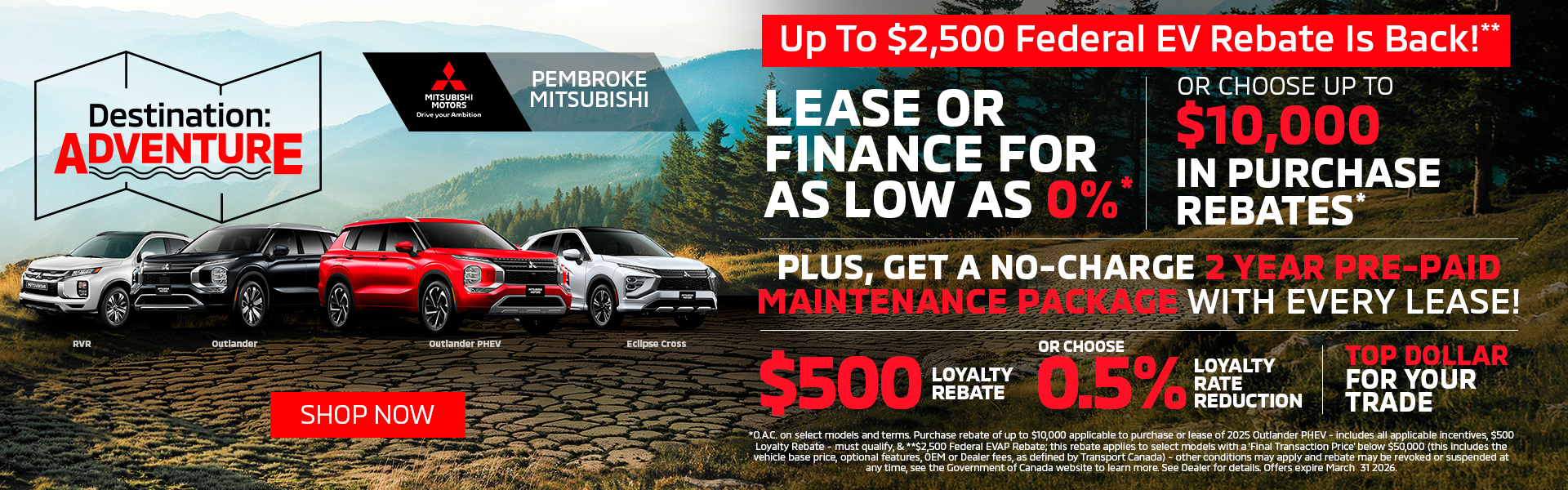 Welcome to the official Pembroke Mitsubishi Web page. Owned and operated by the Slaughter Family, we are located in Pembroke Ontario and proud serve as a family-owned dealer for the Petawawa, Cobden, Eganville, Barry’s Bay, Renfrew, Shawville (Quebec) communities and surrounding areas.